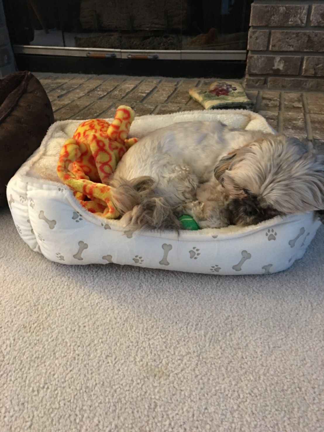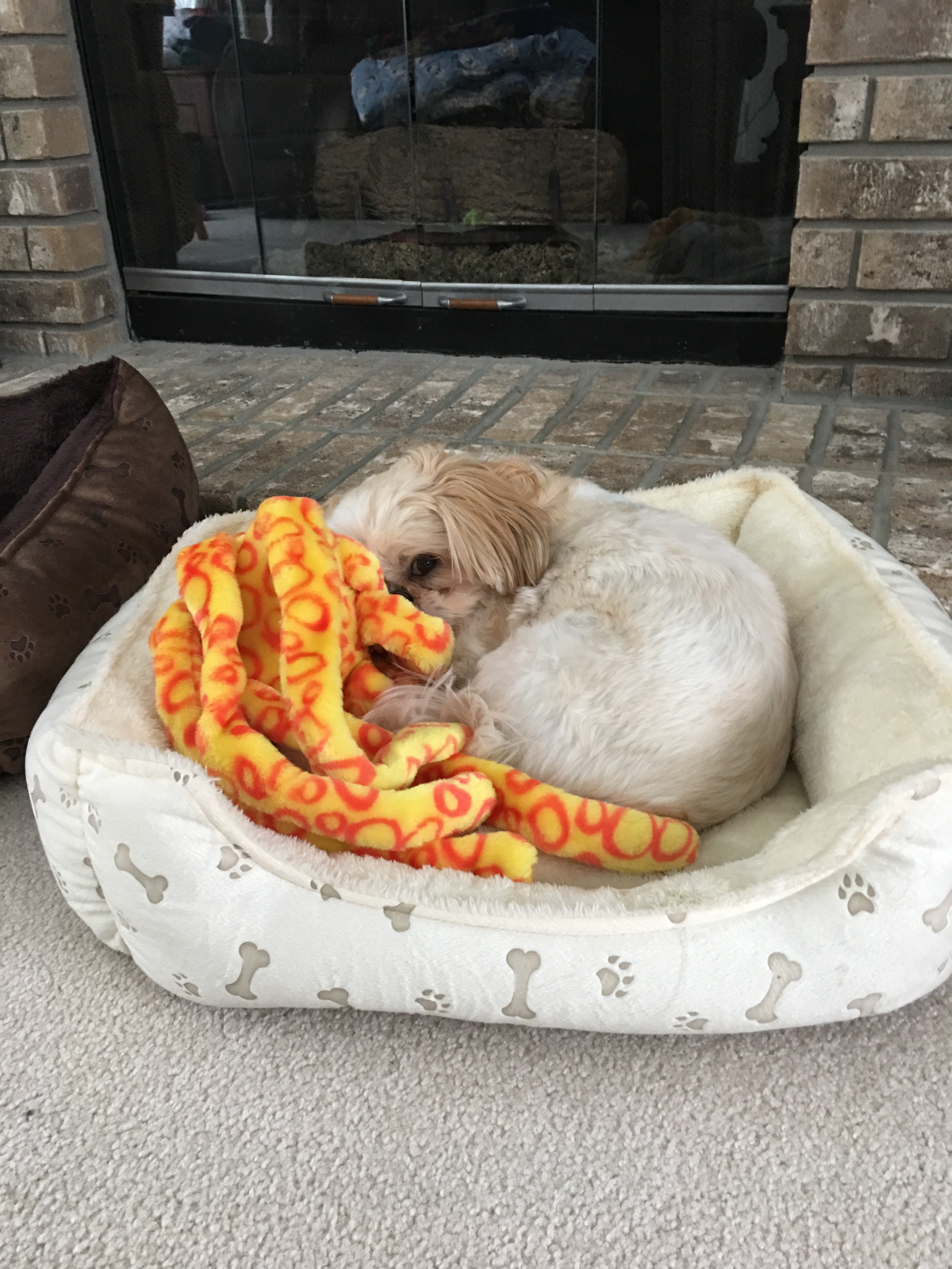 Nap time on a cold winter day! They gave multiple beds, but they take turns with this bed.